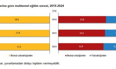 TÜİK, 2024 yılına ilişkin muhtemel eğitim süresi istatistiklerini açıkladı. Muhtemel eğitim süresi (MES), en genel tanımıyla; eğitim hayatına başlayan bir bireyin, eğitimde geçirmesi muhtemel örgün eğitim...