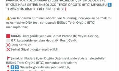 İçişleri Bakanı Ali Yerlikayanın sosyal medya hesabından yaptığı açıklamaya göre, Şırnakta paramotor kullanarak eylem hazırlığı içinde olan ve etkisiz hale getirilen bölücü terör örgütü mensubu 4...