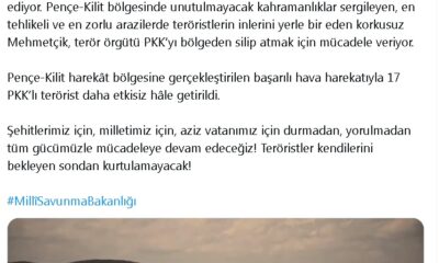 Bakanlığın sosyal medya hesabından yapılan açıklamada, “Kahraman Türk Silahlı Kuvvetlerimiz, hudutlarımızın güvenliği, bölgenin huzuru ve emniyeti için Irak’ın kuzeyindeki operasyonlarına aralıksız devam ediyor. Pençe-Kilit bölgesinde unutulmayacak...