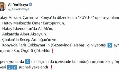 Bakan Yerlikaya, sosyal medya hesabından yaptığı açıklamada, Emniyet Genel Müdürlüğü Kaçakçılık ve Organize Suçlarla Mücadele Başkanlığı koordinesinde, 4 ilde İl Emniyet Müdürlükleri tarafından Kuyu-5 operasyonları düzenleneceğini...