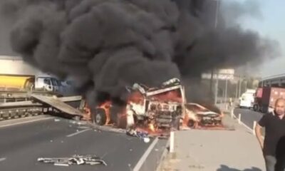 İZMİRin Bornova ilçesinde TIR, minibüs ve otomobilin karıştığı kazada 6 kişi, yaralandı. Otomobilde başlayan yangın, kazaya karışan diğer araçlara da sıçrayarak hasara neden oldu. Kaza, saat...