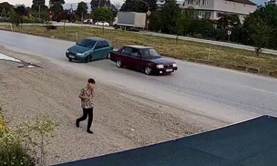 DÜZCEde yol kenarından yürüyen çocuğun kontrolden çıkıp kayarak gelen otomobilin çarpmasından son anda kurtulduğu anlar kameraya yansıdı. Yol kenarındaki ağaçlara çarpan otomobilde hasar oluştu. Kaza, dün...