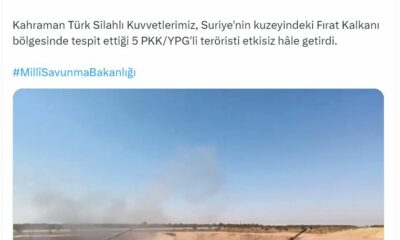 Bakanlığın sosyal medya hesabından yapılan açıklamada, “Teröre ve teröriste hiçbir yerde geçit yok! Kahraman Türk Silahlı Kuvvetlerimiz, Suriyenin kuzeyindeki Fırat Kalkanı bölgesinde tespit ettiği 5 PKK/YPGli...