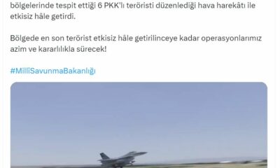 MİLLİ Savunma Bakanlığı (MSB), Irakın kuzeyindeki Metina ve Gara bölgelerinde tespit edilen 6 PKKlı teröristin düzenlenen hava harekatı ile etkisiz hale getirildiğini açıkladı.Bakanlığın sosyal medya hesabından...
