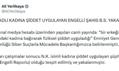 İÇİŞLERİ Bakanı Ali Yerlikaya, sosyal medyada bir kadına şiddet uygulayan şüphelinin Karamanda yakalandığını duyurdu. Bakan Yerlikaya, Karamanda gerçekleşen olaya ilişkin sosyal medya hesabından yaptığı açıklamada, “Bir...