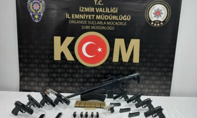 İZMİR’in Bornova ilçesinde, silah kaçakçılığı yaptıkları belirlenen şüphelilere yönelik polisin düzenlediği operasyonda; ruhsatsız 5’i arızalı 10 tabanca, toplam 359 tabanca ve tüfek fişeği, 1 pompalı tüfek ve...