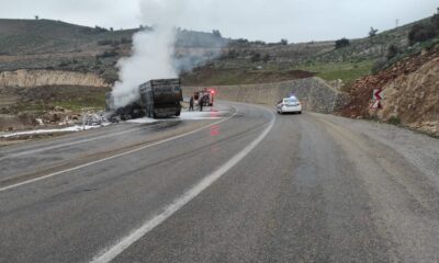 KİLİS’te, seyir halindeyken, henüz belirlenemeyen nedenle bir anda TIR’da başlayan yangın, itfaiye ekiplerinin müdahalesiyle söndürüldü. Kilis-Hatay yolundaki Sabunsuyu bölgesinde, Kilis yönüne giden Halil Tekiner yönetimindeki 63 TH 340...