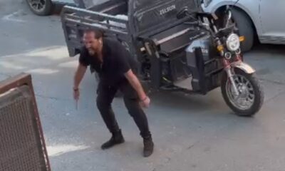 NİĞDEde tartıştığı kasap Alper Kaan Çelikbaş (23) tarafından pompalı tüfekle vurulup yaralanan güzellik merkezi sahibi Ayhan İmirin (47) geçen hafta elinde bıçakla Çelikbaşa tehditler savurduğu görüntüler...