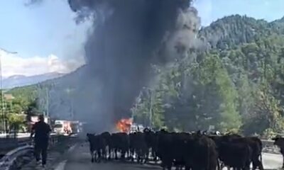 Tarsus-Adana-Pozantı Otoyolu Akçatekir mevkisinde seyreden, sürücüsünün ismi öğrenilemeyen 63 ADE 887 plakalı büyükbaş yüklü TIR’da bilinmeyen nedenle yangın çıktı. Alevleri fark eden sürücü, TIRı durdurup 112...