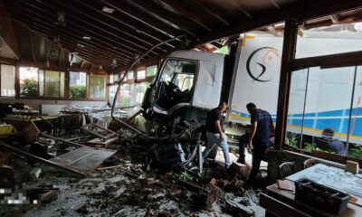 HATAYın Belen ilçesinde freni tutmayan kamyon, park halindeki vidanjöre çarpıp, restorana girdi. Cep telefonu kamerasına yansıyan kazada şans eseri ölen ya da yaralanan olmadı. Kaza, akşam...
