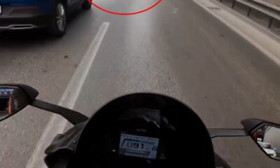BURSAda bir motosiklet sürücüsü, yolda seyir halindeyken aniden önüne kıran otomobile çarpıp yere düştü. O anlar, sürücünün kask kamerasına yansıdı. Kaza, dün öğle saatlerinde, Osmangazi ilçesi...