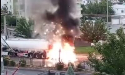 DİYARBAKIR-Silvan kara yolunda, akaryakıt yüklü tankere arkadan çarpan otomobilde yangın çıktı, ardından patlama oldu. O anlar cep telefonuyla görüntülendi. Kaza, dün akşam saatlerinde Diyarbakır-Silvan kara yolu...