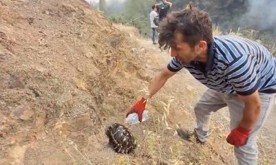 YANGINDAN KURTARDIĞI KAPLUMBAĞAYI SU DÖKEREK KENDİNE GETİRDİ Kestel ilçesi Ağlaşan Mahallesi’ndeki orman yangınına havadan ve karadan müdahale çalışmaları sürerken, çevre mahallelerden bölgeye destek için gelen vatandaşlar...
