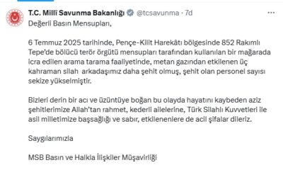 Bakanlığın sosyal medya hesabından yapılan açıklamada, “06 Temmuz 2025 tarihinde, Pençe-Kilit Harekâtı bölgesinde 852 Rakımlı Tepe’de bölücü terör örgütü mensupları tarafından kullanılan bir mağarada icra edilen...