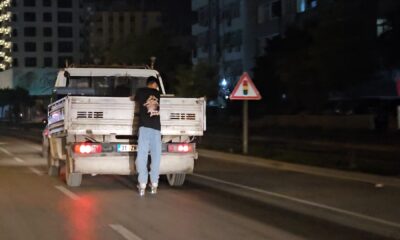 Akşam saatlerinde merkez Seyhan ilçesi Mustafa Kemalpaşa Bulvarında patenli genç, kamyonetin kasasına tutunarak ilerledi. O anlar ise başka bir araçtaki kişi tarafından cep telefonuyla kaydedildi. Görüntüde,...