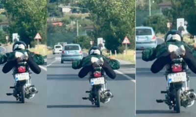 SAKARYA D-650 kara yolunda giden motosiklet sürücüsü, akrobatik hareketler yaparak hem kendi hem de trafikte seyir halinde olan sürücülerin hayatını tehlikeye attı. Motosiklet sürücüsünün bu tehlikeli...