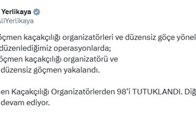 Bakan Yerlikayanın sosyal medya hesabından yaptığı açıklamaya göre; Göç İdaresi Başkanlığı ile Emniyet Genel Müdürlüğü Göçmen Kaçakçılığıyla Mücadele ve Hudut Kapıları Daire Başkanlığı koordinesinde, göçmen kaçakçılığı...