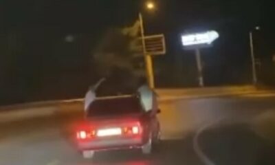 Fethiye-Ölüdeniz kara yolunda gece saatlerinde seyir halinde olan 45 YB 9488 plakalı otomobildekiler, aracın penceresinden sarkarak yolculuk yaptı. Araçtakilerin hem trafiği hem de kendi can güvenliklerini...