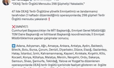 İçişleri Bakanı Yerlikayanın sosyal medya hesabından yaptığı açıklamaya göre; Cumhuriyet başsavcılıkları ile MİT Başkanlığı, Emniyet Genel Müdürlüğü ve Jandarma Genel Komutanlığı koordinesinde; DEAŞa yönelik son 2...
