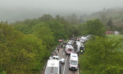 BİLECİK’in Osmaneli ilçesinde iki otomobil kafa kafaya çarpıştı. Kazada otomobillerden biri savrularak arkasındaki otomobile ve motosiklete çarparak devrildi. Kazada 3 kişi hayatını kaybederken, kaza anı güvenlik...