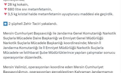 Bakan Yerlikaya, sosyal medya hesabından yaptığı açıklamada, “Mersin Cumhuriyet Başsavcılığı ile Jandarma Genel Komutanlığı Narkotik Suçlarla Mücadele Daire Başkanlığı ve Emniyet Genel Müdürlüğü Narkotik Suçlarla Mücadele...