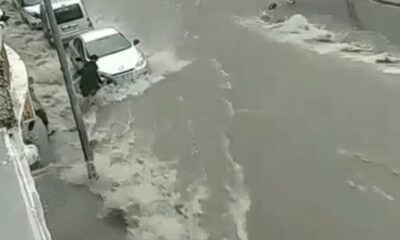 Esenyurt’ta dereye dönen yokuşta yolun karşısında geçmeye çalışan biri çocuk iki kişi akıntıya kapıldı. Sel sularında sürüklenen çocuk park halindeki otomobile tutunurken, çevredeki bir kişi çocuğu...