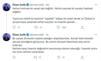 AK Parti Sözcüsü Ömer Çelik, şarkıcı Gülşen’in imam hatiplilere yönelik sözleriyle ilgili, “Toplumun belirli bir kesimini ‘sapıklık’ iddiası ile hedef almak ve Türkiye’yi ayrıştırmaya çalışmak nefret...