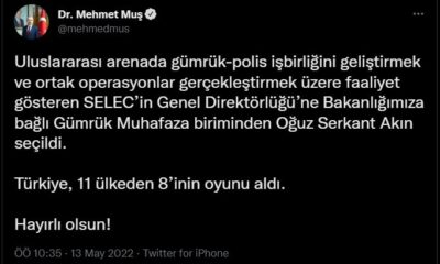 TİCARET Bakanı Mehmet Muş, Güneydoğu Avrupa Kanun Uygulama Merkezi’nin (SELEC) Genel Direktörlüğü’ne Gümrük Muhafaza biriminden Oğuz Serkant Akın’ın seçildiğini duyurdu. Bakan Muş, Twitter’daki hesabından yaptığı açıklamada,...