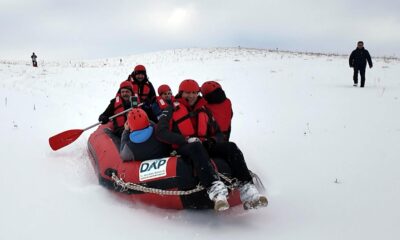 Aziziye ilçesinin kırsal Söğütlü Mahallesi’ne özel tasarım araçlarıyla getirilen rafting botu ilgi odağı oldu. Nehir yerine karlar üzerine bırakılan bota maske ve kasklarını takarak binen Macera...