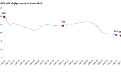 TÜİK, Kasım 2024 dönemine ilişkin hizmet üretici fiyat endeksi verilerini açıkladı. Buna göre; hizmet üretici fiyatları bir önceki aya göre yüzde 0,76 azaldı, bir önceki yılın...