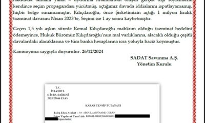 SADATtan yapılan yazılı açıklamada, “Dönemin CHP Genel Başkanı Kemal Kılıçdaroğlu 2022 seçim döneminde şirketimiz hakkında tamamı yalan, uydurma ithamlardan oluşan gerçek dışı söylemlerle kendince seçim propagandası...