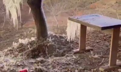 Hava sıcaklığının mevsim normallerinin altında seyrettiği Siirt’te, kent merkezindeki bir üzüm bağında bulunan ağaca, patlayan borudan su sıçradı. Sıcaklığın gece sıfırın altında 5 dereceye kadar düştüğü...