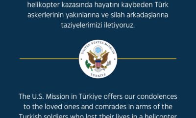 Büyükelçiliğin sosyal medya hesabından yapılan açıklamada, “ABD’nin Türkiye’deki Diplomatik Temsilciliği olarak, 9 Aralık tarihinde Isparta’da meydana gelen helikopter kazasında hayatını kaybeden Türk askerlerinin yakınlarına ve silah...