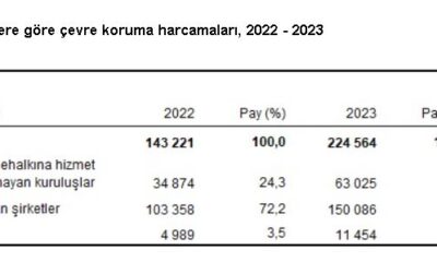 TÜİK, 2023 yılı çevre koruma harcama istatistiklerini açıkladı. Buna göre; çevre koruma harcamaları bir önceki yıla göre yüzde 56,8 artarak toplam 224,6 milyar TL olarak gerçekleşti....