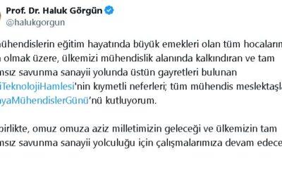 Savunma Sanayii Başkanı Görgün, sosyal medya hesabından yaptığı açıklamada, “Biz mühendislerin eğitim hayatında büyük emekleri olan tüm hocalarımız başta olmak üzere, ülkemizi mühendislik alanında kalkındıran ve...
