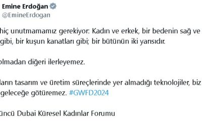 Emine Erdoğan, sosyal medya hesabından yaptığı paylaşımda, “Şunu hiç unutmamamız gerekiyor, kadın ve erkek, bir bedenin sağ ve sol ayağı gibi, bir kuşun kanatları gibi, bir...