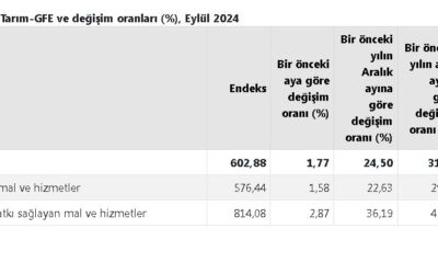 TÜİK, Eylül 2024 dönemine ilişkin tarımsal girdi fiyat endeksini açıkladı. Buna göre; tarımsal girdi fiyatları bir önceki aya göre yüzde 1,77, bir önceki yılın aralık ayına...