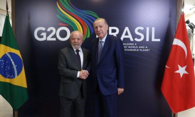 İletişim Başkanlığı sosyal medya hesabından yapılan paylaşımda, Cumhurbaşkanı Recep Tayyip Erdoğanın G20 Liderler Zirvesi için gittiği Brezilya’da Brezilya Devlet Başkanı Lula Da Silva ile bir görüşme...