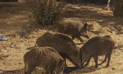 AYDINın Didim ilçesinde ormanda yiyecek bulamayan ve aç kalan yaban domuzları, şehre indi. O anlar, cep telefonu kamerasıyla kaydedildi. Didim ilçesi Akbük Mahallesinde, akşam saatlerinde ormandan...