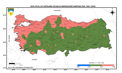 Meteoroloji Genel Müdürlüğü, 2024 yılı eylül ayı sıcaklık analizi raporunu yayımladı. Buna göre; 2024 yılı eylül ayında ortalama sıcaklıklar Ege ve Karadeniz bölgelerinin iç kesimlerinde, Doğu...