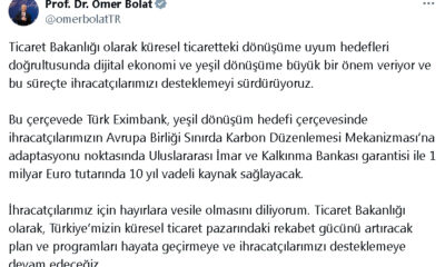 Bakan Ömer Bolat, sosyal medya hesabından yaptığı açıklamada, “Ticaret Bakanlığı olarak küresel ticaretteki dönüşüme uyum hedefleri doğrultusunda dijital ekonomi ve yeşil dönüşüme büyük bir önem veriyor...