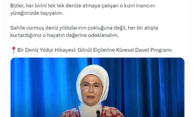 Emine Erdoğan, sosyal medya hesabından yaptığı paylaşımda, “Koruyucu Ailelik, Deniz Yıldızı hikayesindeki deniz; refakatsiz, kimsesiz kalmış çocuklarımız ise birer deniz yıldızıdır. Bizler, her birini tek tek...