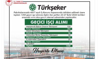 Şirketin sosyal medya hesabından yapılan açıklamada, “Fabrikalarımızda 4857 sayılı İş Kanunu kapsamında istihdam edilmek üzere toplam 1350 geçici işçi alımına ilişkin ilan şartları 23-27 Eylül 2024...