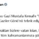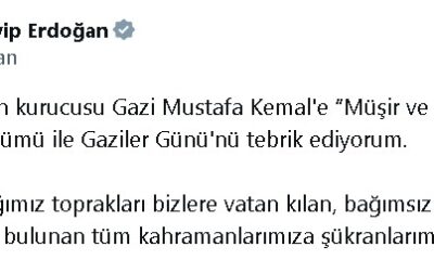 Cumhurbaşkanı Erdoğan, sosyal medya hesabı üzerinden yaptığı açıklamada, “Cumhuriyetimizin kurucusu Gazi Mustafa Kemale “Müşir ve Gazi” ünvanı verilişinin yıl dönümü ile Gaziler Gününü tebrik ediyorum. Üzerinde yaşadığımız...