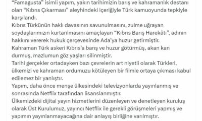 RTÜK Başkanı Şahin, sosyal medya hesabından yaptığı açıklamada, “Famagusta isimli yapım, yakın tarihimizin barış ve kahramanlık destanı olan Kıbrıs Çıkarması aleyhindeki içeriğiyle Türk kamuoyunda tepkiyle karşılandı....