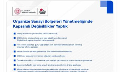 Bakanlıktan yapılan açıklamaya göre; Organize Sanayi Bölgeleri Uygulama Yönetmeliğinde Değişiklik Yapılmasına Dair Yönetmelik, 5 Eylül tarihli Resmi Gazetede yayımlanarak yürürlüğe girdi. Yönetmelikte yapılan değişiklikle OSB altyapılarının...
