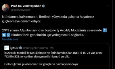 Türkiye İş Kurumunun (İŞKUR) sosyal medya hesabından yapılan açıklamada, ne eğitimde ne istihdamda olan (NEET) 713 bin 831 gence özel danışmanlık hizmeti verildiği belirtilerek, “İş Avcılığı...