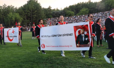 Her yıl geleneksel olarak Devrim Stadyumunda düzenlenen toplu mezuniyet töreni saat 18.00de başladı. Bando eşliğinde çalınan 100üncü Yıl Marşı ve yürüyüşü ile başlayan tören, öğrencilerin cübbeleriyle...