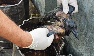 Veteriner Hekim Ali Laçinbala, ziyarete gittiği bir tesiste atık yemeklerin bulunduğu kazandan ses geldiğini fark etti. Kontrol ettiğinde atık yemeklere bulanmış bir kargayı gören Laçinbala, hayvanı...