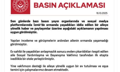 Bakanlığın sosyal medya hesabından yapılan açıklamada, “Son günlerde bazı basın yayın organlarında ve sosyal medya platformlarında İzmirde ormanda yaşadıkları iddia edilen bir aileye yönelik haber ve...